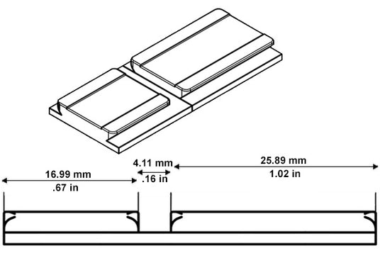 Du vil genkende Aimpoint Acro footprint ved første øjekast, da det ikke ligner andre footprints. I stedet for en række tapper og huller bruger Aimpoint Acro footprint en vinkelret rekylstopper.