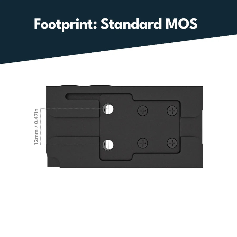 Denne rødpunktsigte bruger Glock gen 5 MOS footprint. Den passer til Glock MOS gen 5 modeller uden behov for nogen adapterplader.